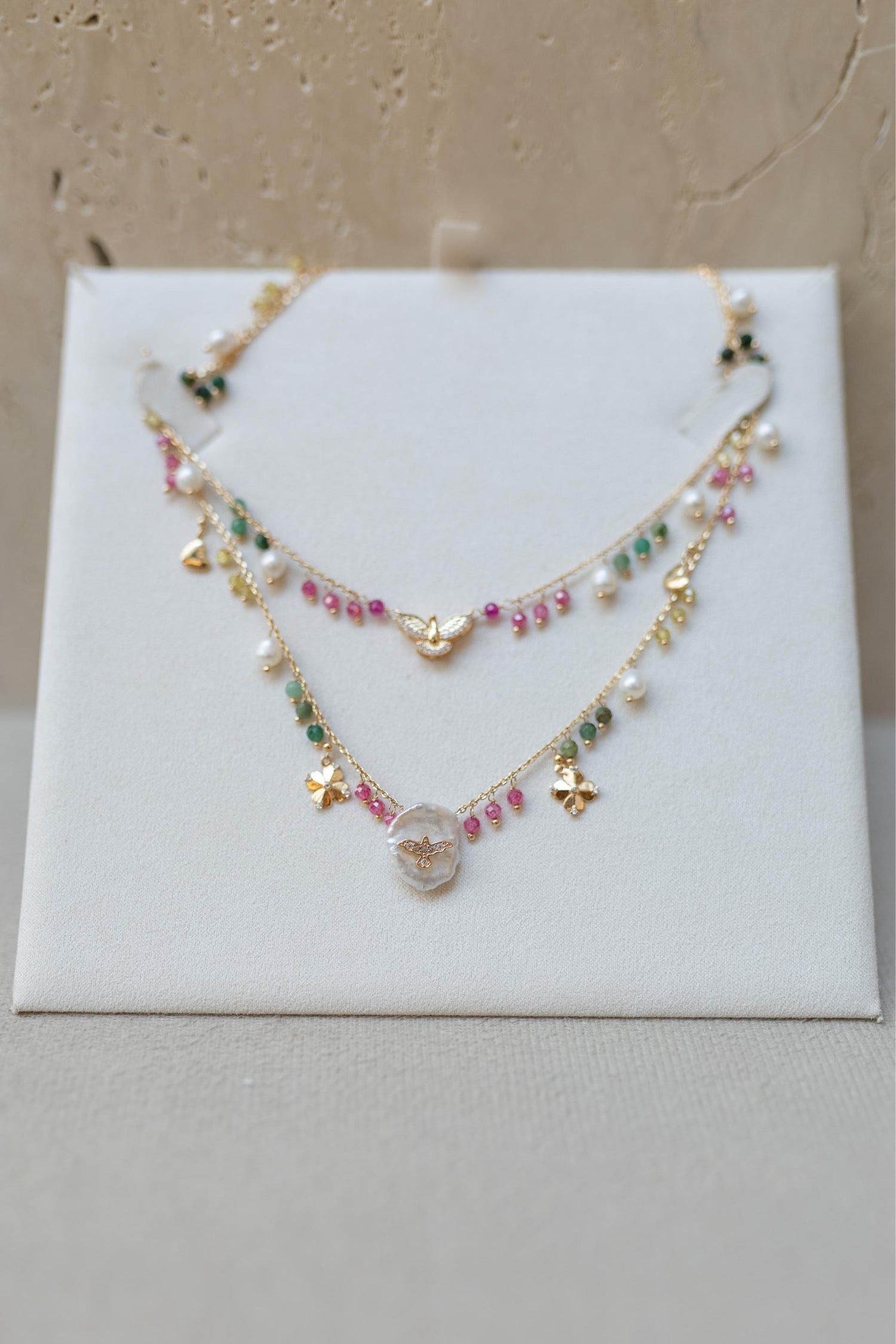 Colar Escapulário Espírito Santo Pedras Naturais Madrepérola Dourado