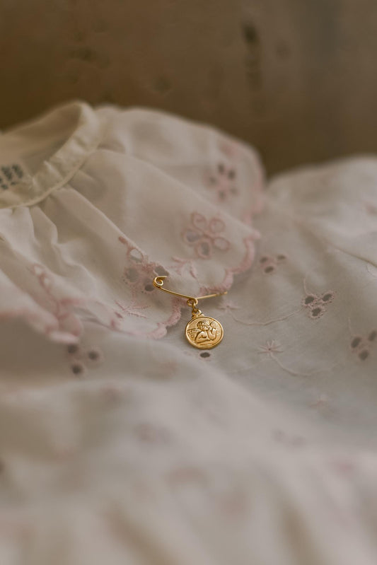 Alfinete Batizado Anjo da Guarda Prata 925 Ródio Branco