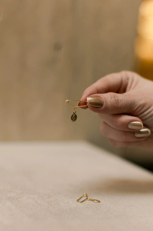 Alfinete Batizado Medalha Milagrosa Ródio Branco