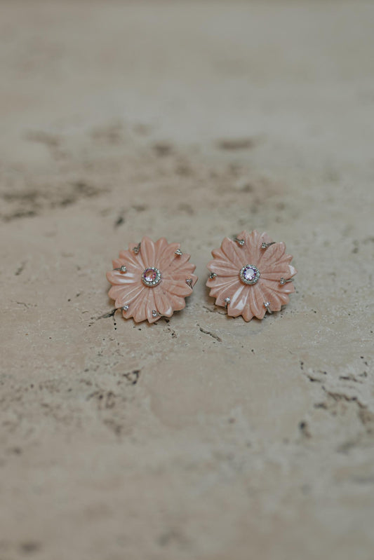 Brinco Flor Rosa Baquelite Prata 925 Ródio Branco