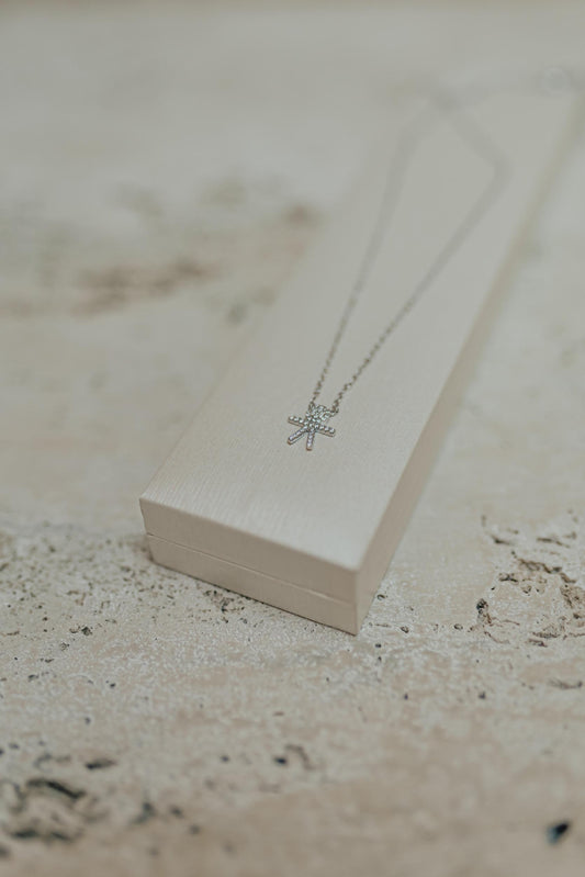Colar Flor Seis Pétalas Moissanite Prata 925 Ródio Branco