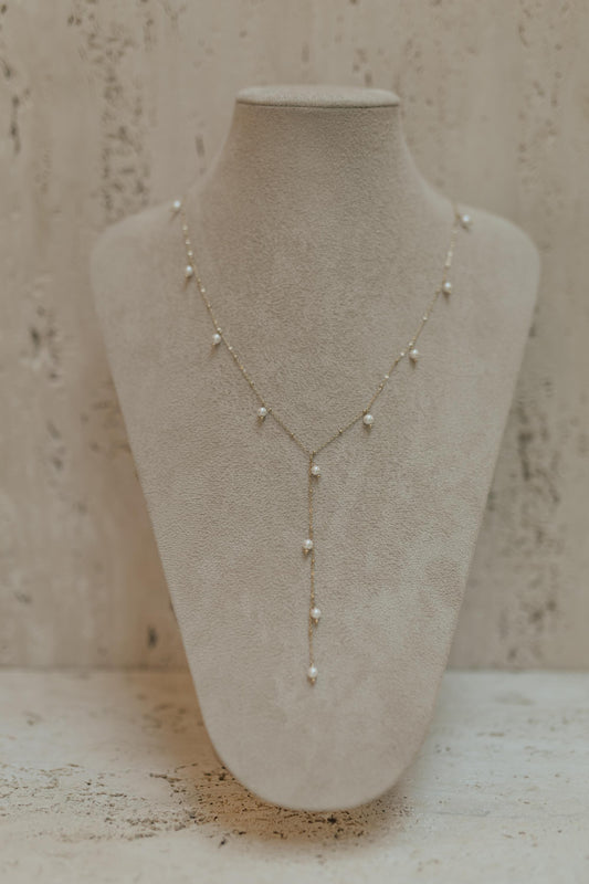 Colar Fio de Nylon Pontos de Luz Ródio Branco