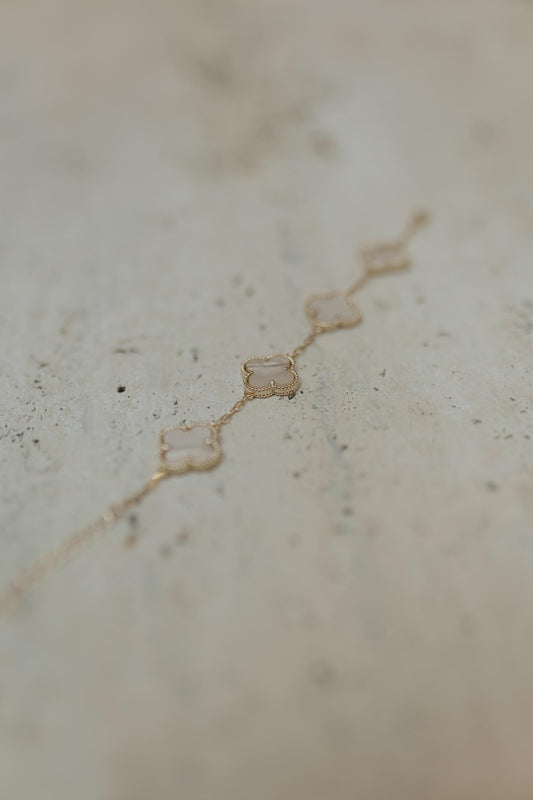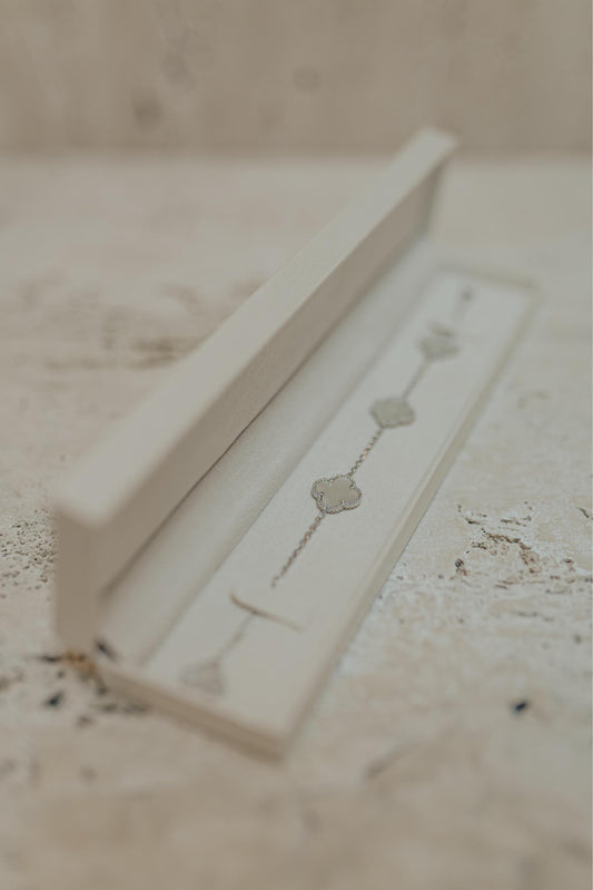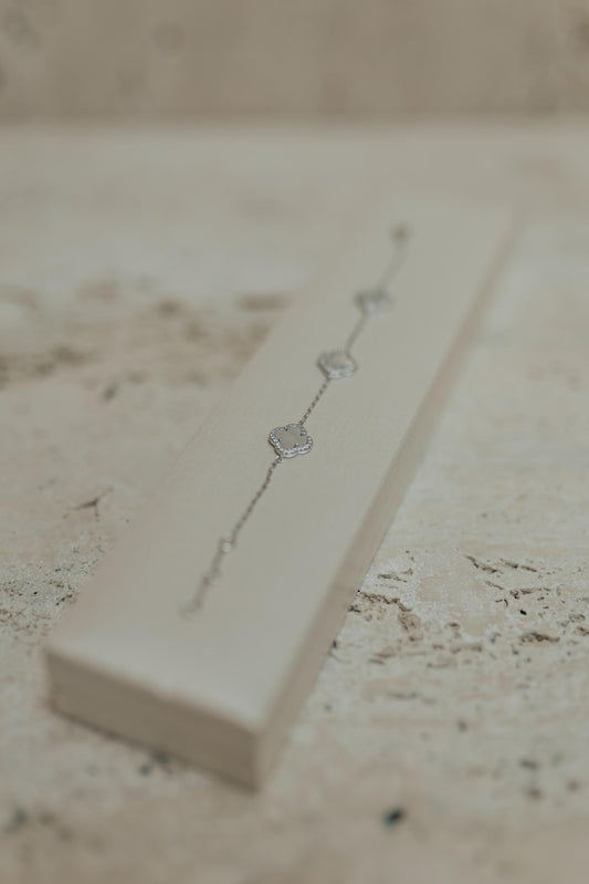Pulseira Inspo Trevos Madrepérola Prata 925 Ródio Branco