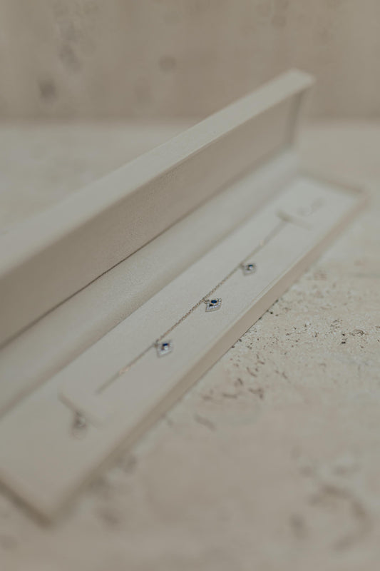Pulseira Olho Grego Safira Prata 925 Ródio Branco