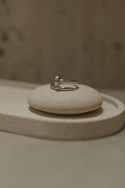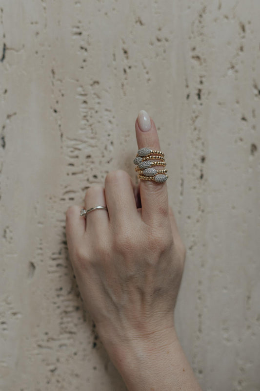 Anel Bolinhas Oval Cravejado Ródio Branco
