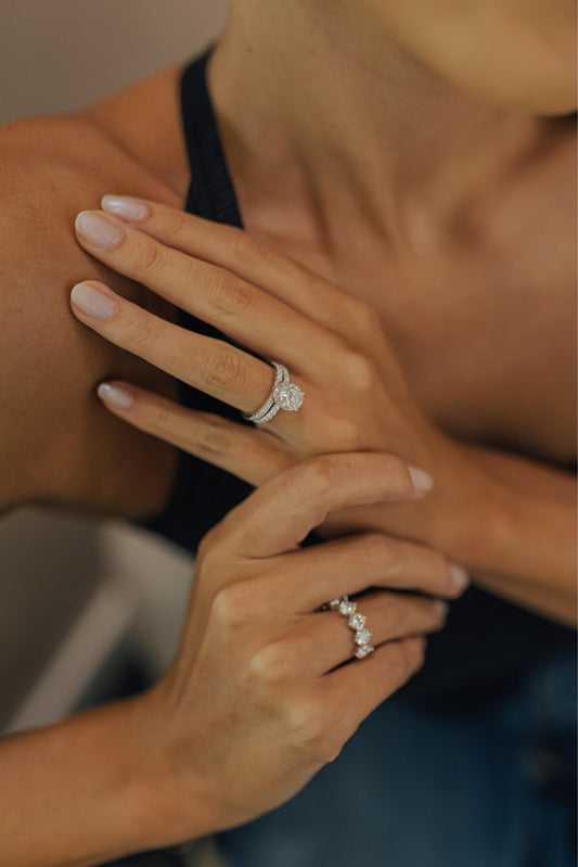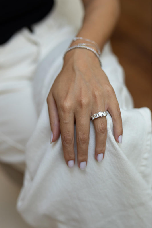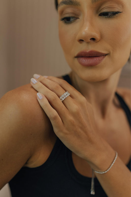 Anel Duplo Glam Moissanite Prata 925 Ródio Branco