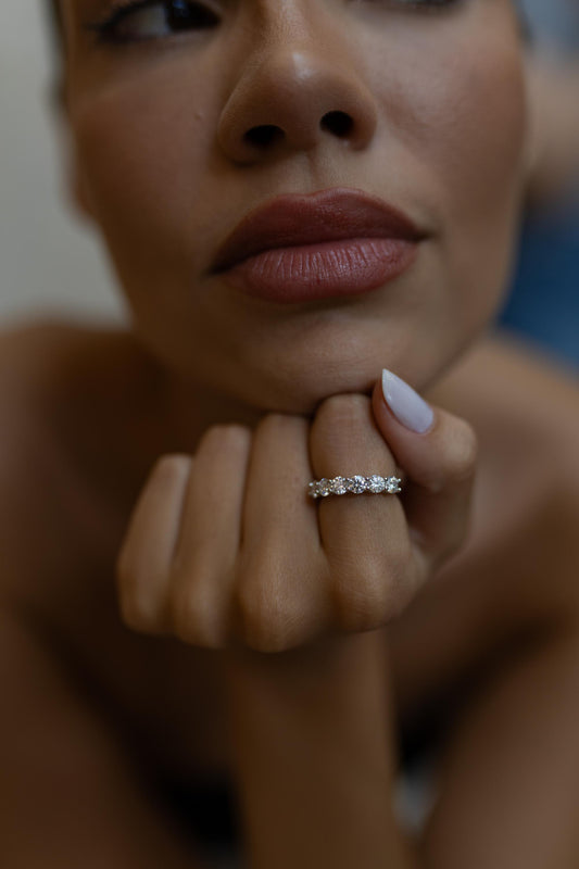 Anel Meia Aliança 6 Pontos de Luz Moissanite Prata 925 Ródio Branco