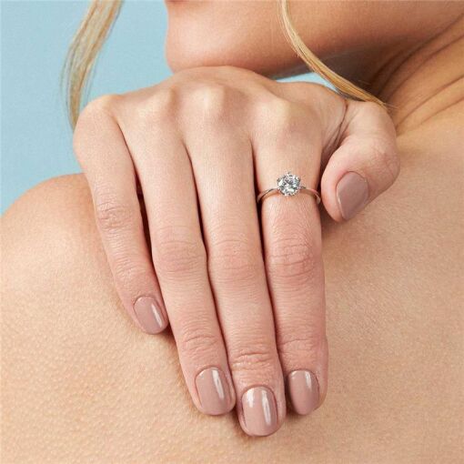 Anel Solitário Glam 5mm Moissanite Prata 925 Ródio Branco