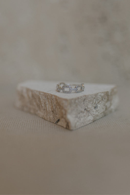 Anel Elos Vazados Cravejados e Lisos Ródio Branco