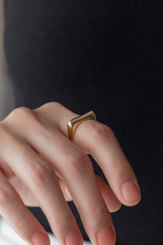 Anel Frente Quadrado Liso Dourado