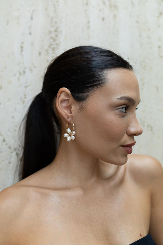 Brinco Argola Detalhada Com Pingente Pérolas Dourado