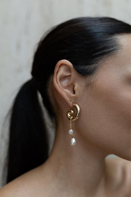 Brinco Argola Espiral Pêndulo de Pérolas Dourado