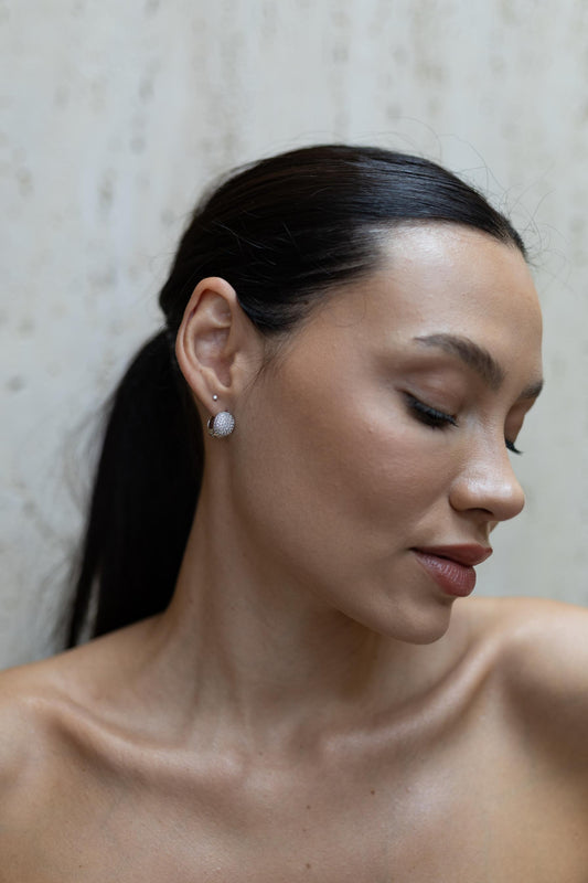 Brinco Argola Meia Esfera Cravejada Menor Ródio Branco