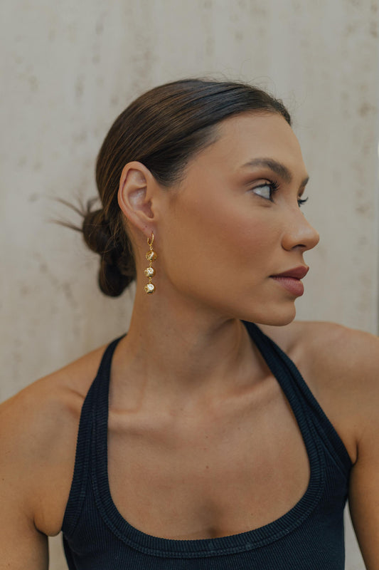 Brinco Argola Pêndulo Esferas Orgânicos Dourado