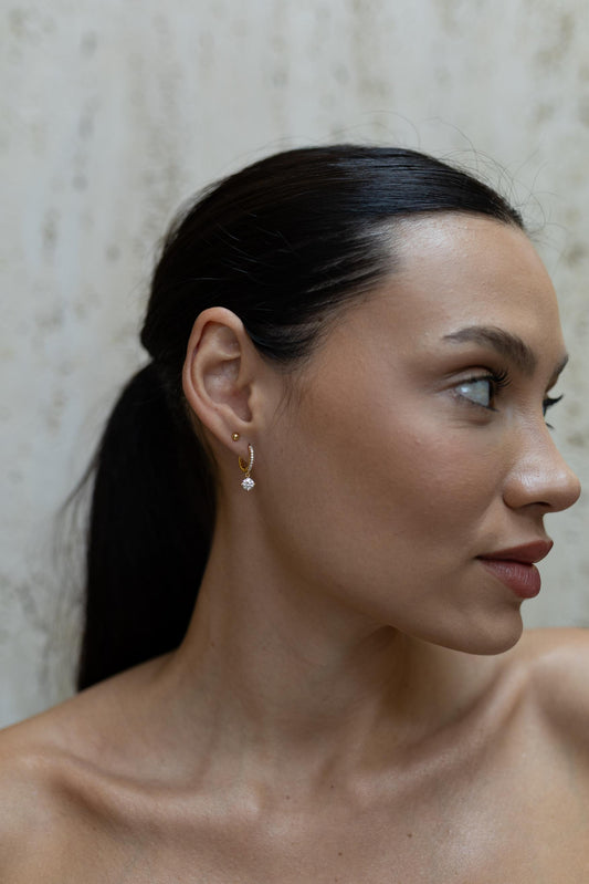 Brinco Argola Prata 925 Gota Cristal Moissanite Dourado