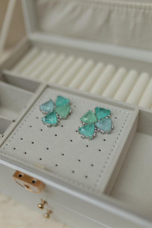 Brinco Turmalina Triangulares Ródio Branco