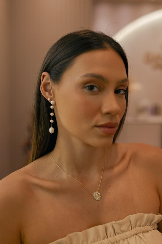 Brinco Pérolas de Água Doce Cascata 2 em 1