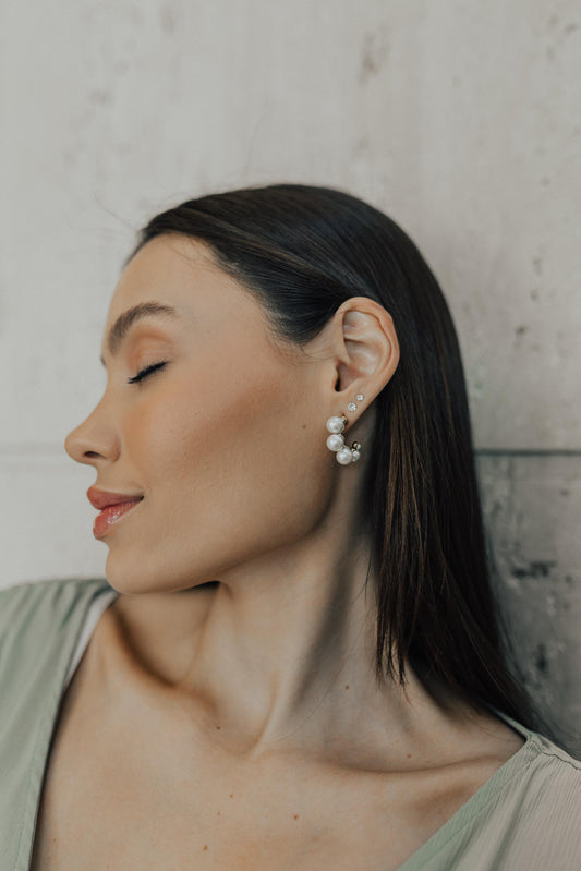 Brinco Ear Cuff Mini Pérolas e Zircônias Cristal Ródio Branco