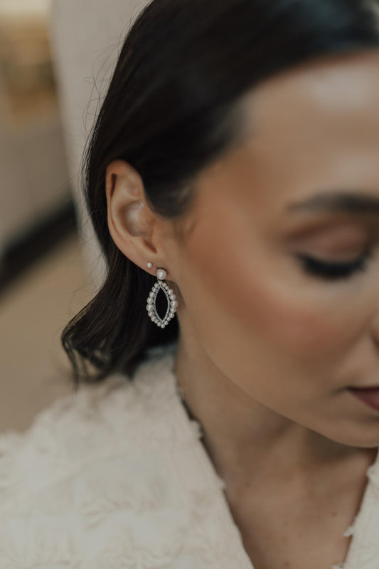BLACK FRIDAYBrinco Geométrico Invisible Pérola Ródio Branco