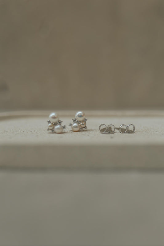 Brinco 3 Pérolas Prata 925 Ródio Branco