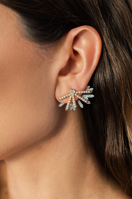 Brinco Borda Dupla Cravejada Pérola Prata 925 Ródio Branco