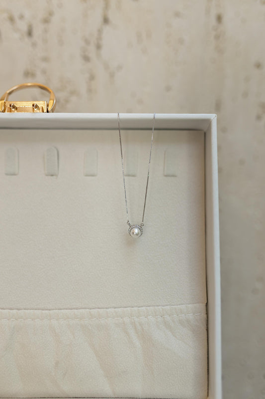Colar Pérola com Entremeios Cravejados Prata 925 Ródio Branco