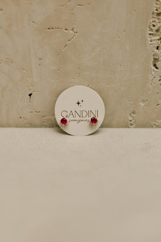 Brinco Solitário Redondo Rubi Dourado