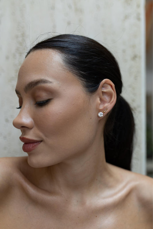 Brinco Cravejado Bride Invisible Pérola Dourado