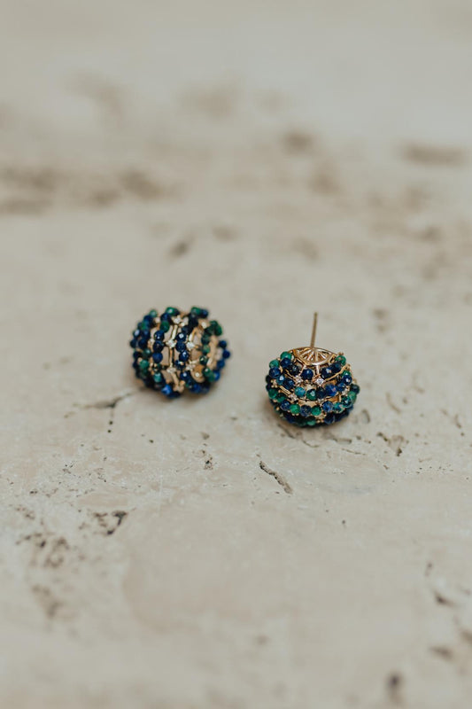 Brinco Redondo Sodalita e Malaquita Dourado