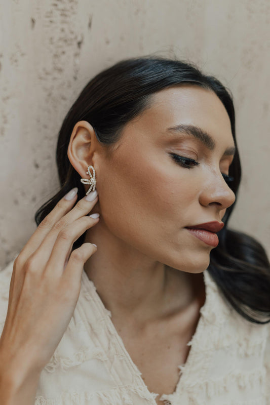 DIA DO CONSUMIDORBrinco Laço Cravejado Dourado