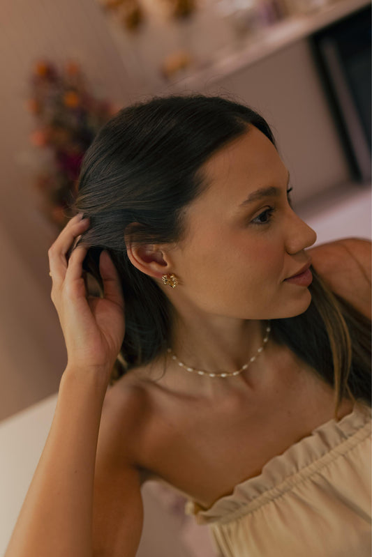 Brinco Duplo Orgânico Marfim Gotinhas Dourado