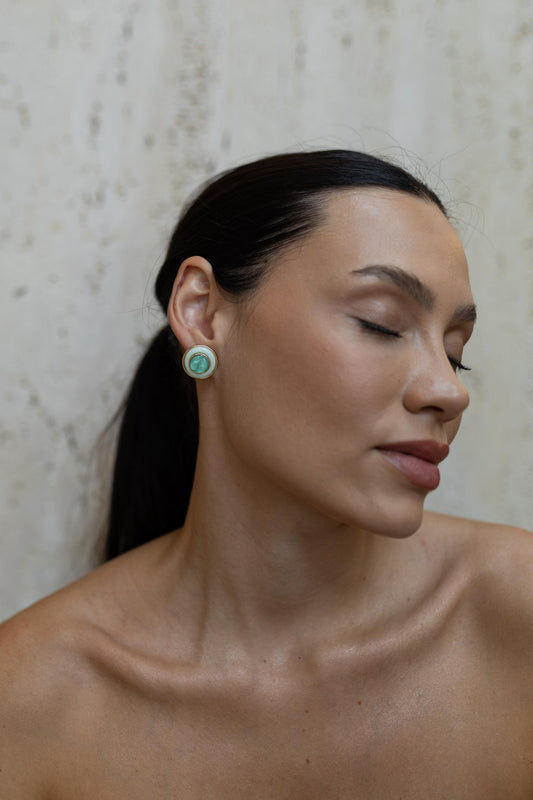 Brinco Redondo Resina Verde Dourado