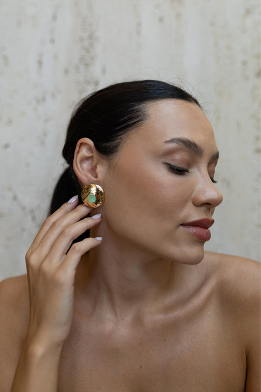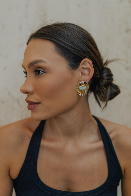 DIA DO CONSUMIDORBrinco Argola Esferas Turquesa Dourado