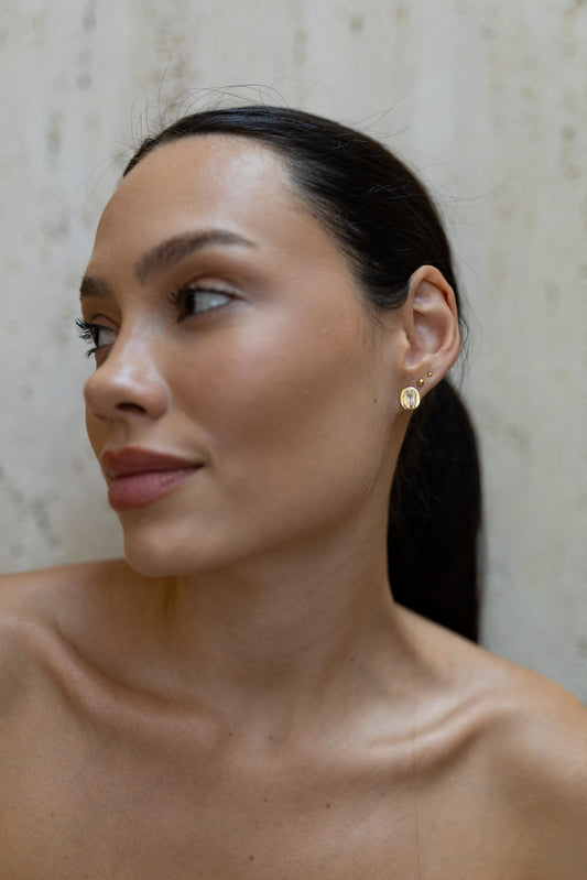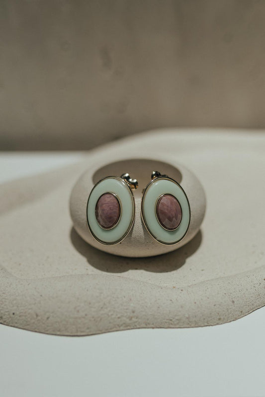 DIA DO CONSUMIDORBrinco Chapa Oval Jade Ametista Dourado