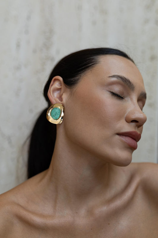 DIA DO CONSUMIDORBrinco Orgânico Resina Translucida Verde Dourado