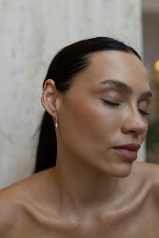 DIA DO CONSUMIDORBrinco Argola Prata 925 Cruz Cravejada Moissanite Dourado