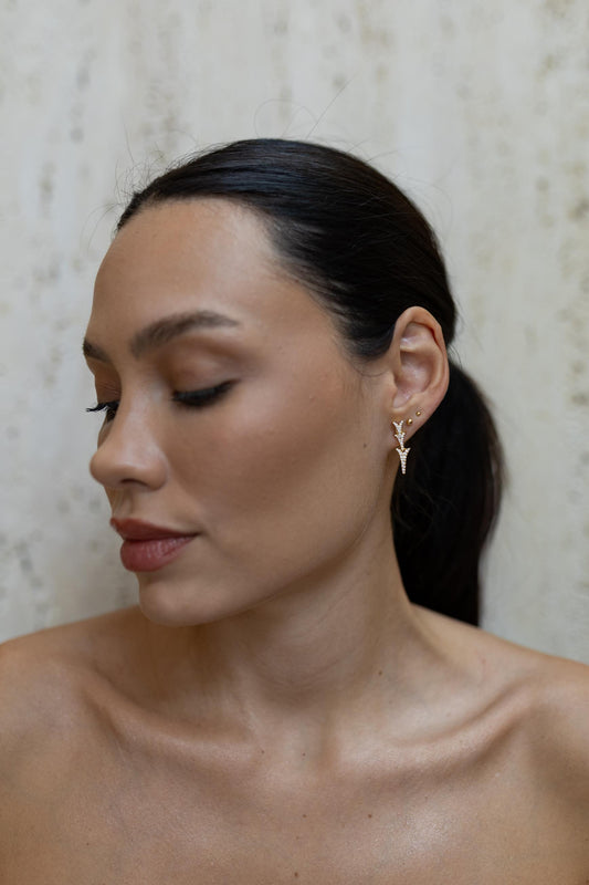 DIA DO CONSUMIDORBrinco Pêndulo Setas Cravejadas Dourado