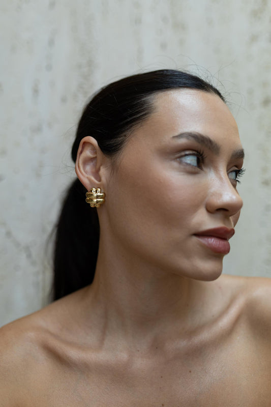 DIA DO CONSUMIDORBrinco Botão X Duplo Liso Dourado
