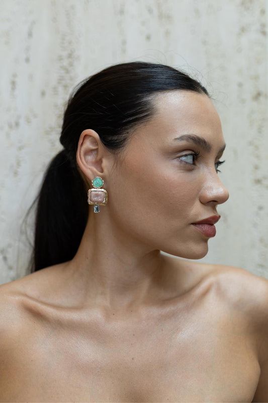 DIA DO CONSUMIDORBrinco Retângulo Cristal e Pérola Shell Dourado