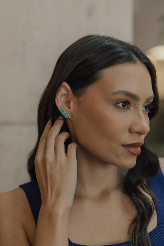 BLACK FRIDAYBrinco Ear Cuff Esmeralda Paraíba Asas Dourado