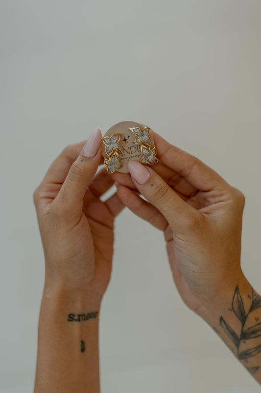 BLACK FRIDAYBrinco Ear Cuff 2 Flores Cravejadas Dourado