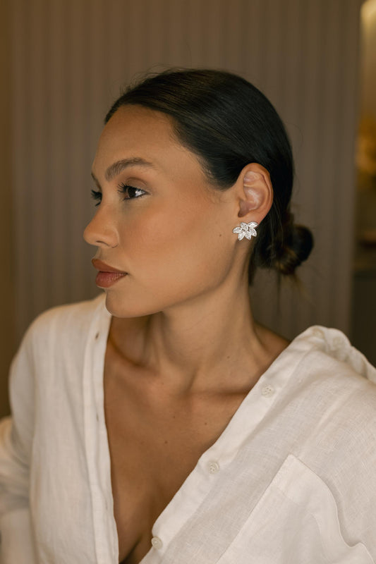 Brinco Flor Moissanite Prata 925 Ródio Branco