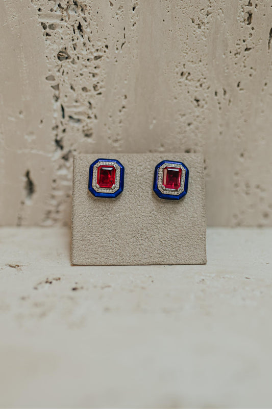 Brinco Retangular Esmaltado Azul Marinho Ródio Branco