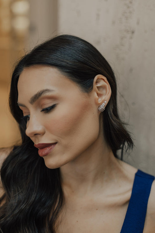Brinco Esfera Cravejada Pérola Ródio Branco