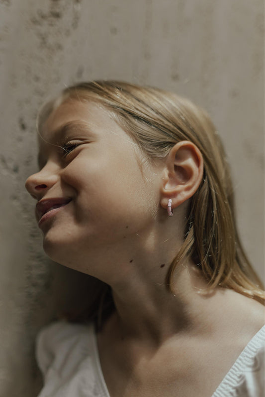 Brinco Argola Esmaltada Rosa Ródio Branco