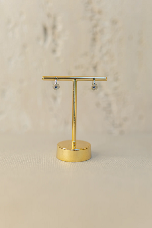 Brinco Olho Grego Resina Azul Cravejado Ródio Branco