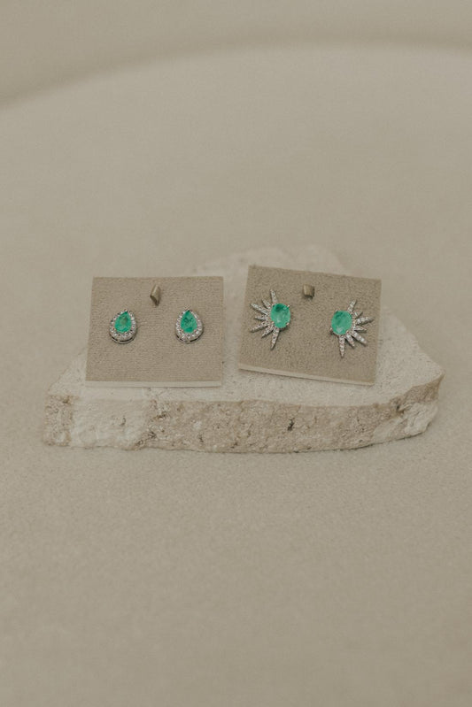 BLACK FRIDAYBrinco Gota Esmeralda Borda Cravejada Ródio Branco