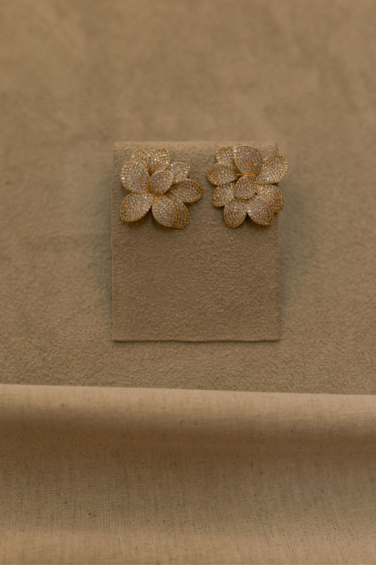 Brinco Flor Duo Cravejado Dourado