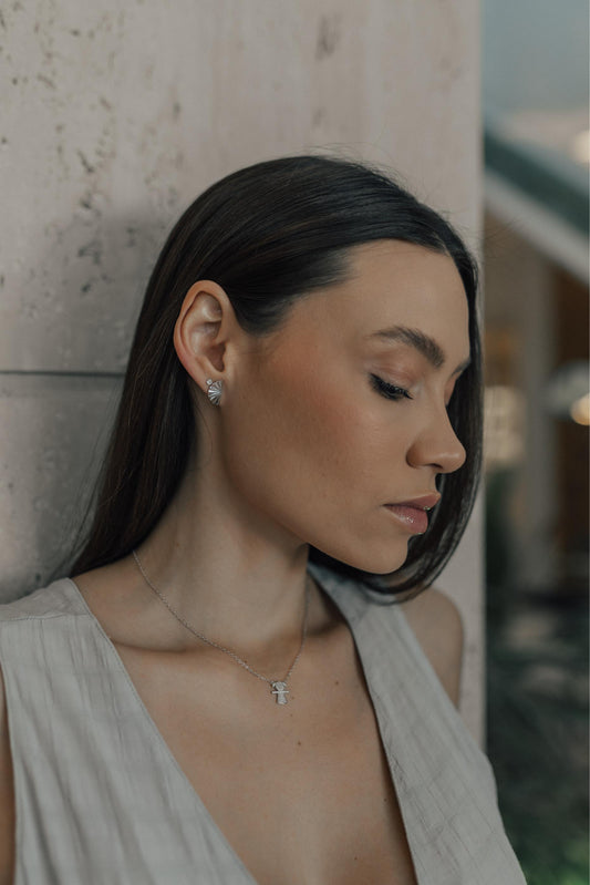 Brinco Mini Leque Trabalhado Ródio Branco