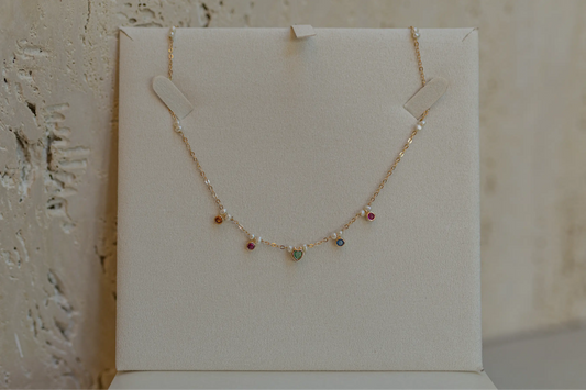 Choker Zircônias Coloridas e Pérolas de Água Doce Dourado